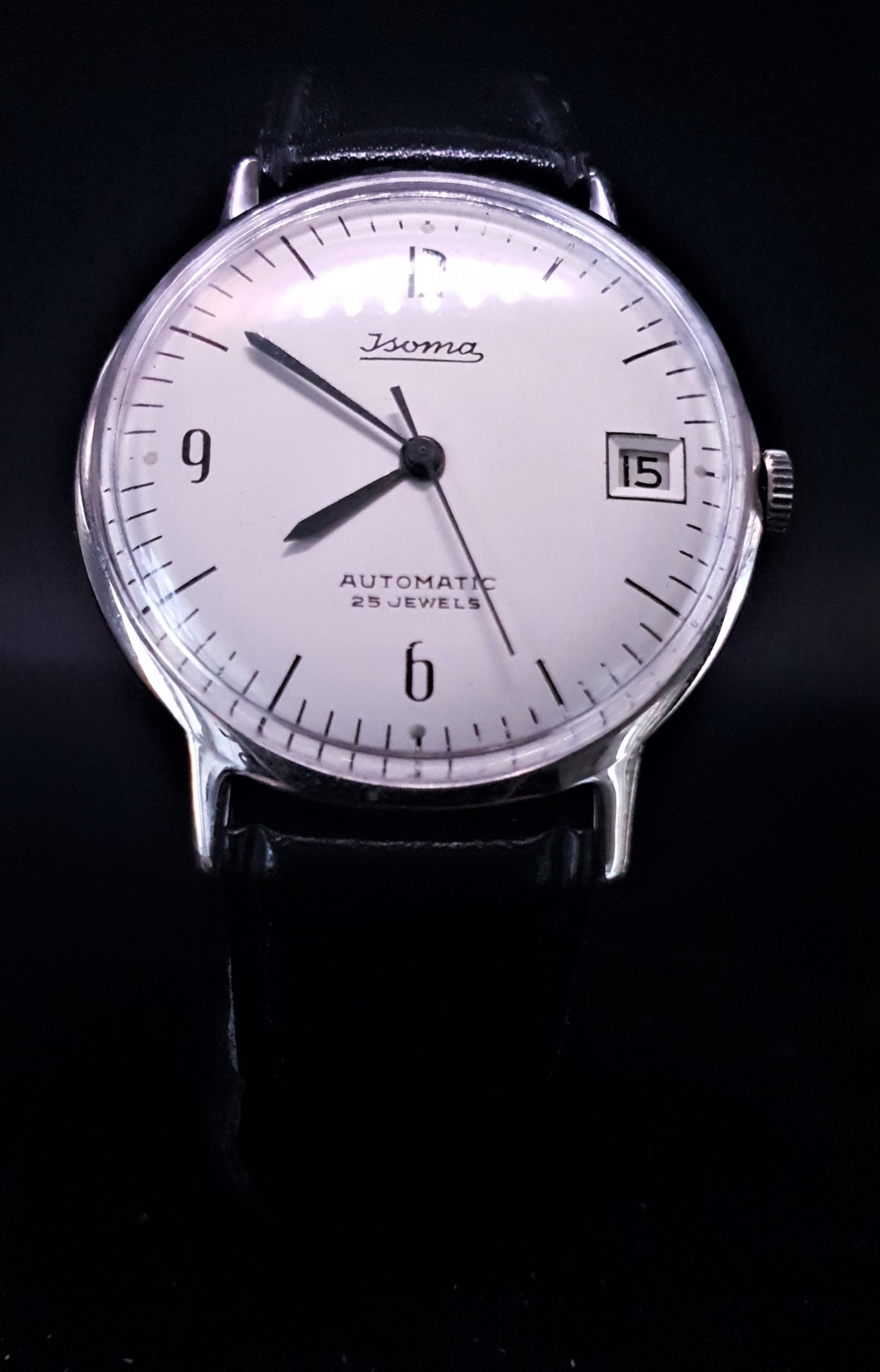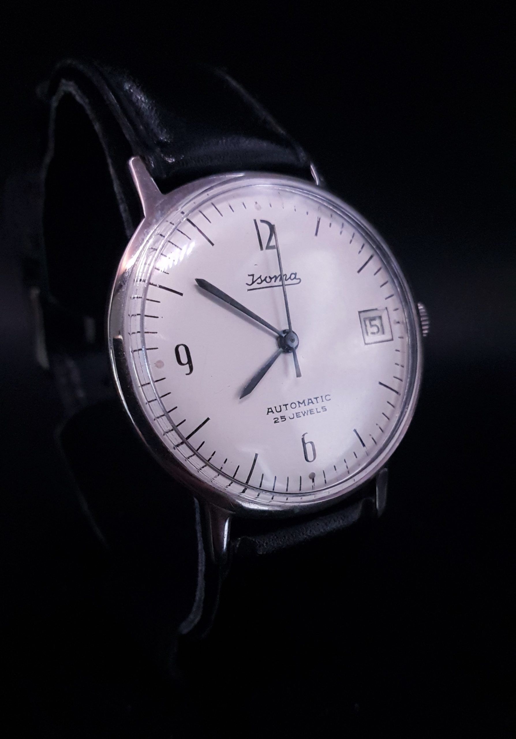 What about this? A gift box with a superbe 70-ties Isoma with Anker movement, automatic, crisp and clear that runs on an 260 Amplitude! It loses 80 seconds a day which is worthwhile adjusting if you’d care. I leave the movement untouched by me (so will not open the watch), no need to mess with it by me.